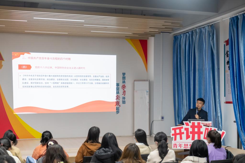 刘朝华以全面深刻地从党为什么做关于党的百年奋斗历程的决议、党百年奋斗历程的四个时期和党百年奋斗的历史经验总结等方面对党的十九届六中全会进行了精辟的解读,并勉励同学们作为新时代的中国青年,要肩负起时代重任,为全面建设社会主义现代化强国而不懈奋斗。