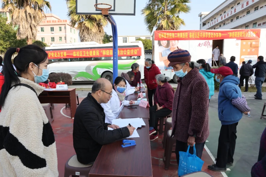 12月19日,由中华社会救助基金会发起,第二附属医院、临桂区卫生健康局、临桂区医疗卫生共同体承办的“肺癌筛查防治公益活动”来到临桂区六塘镇开启广西第一站活动。