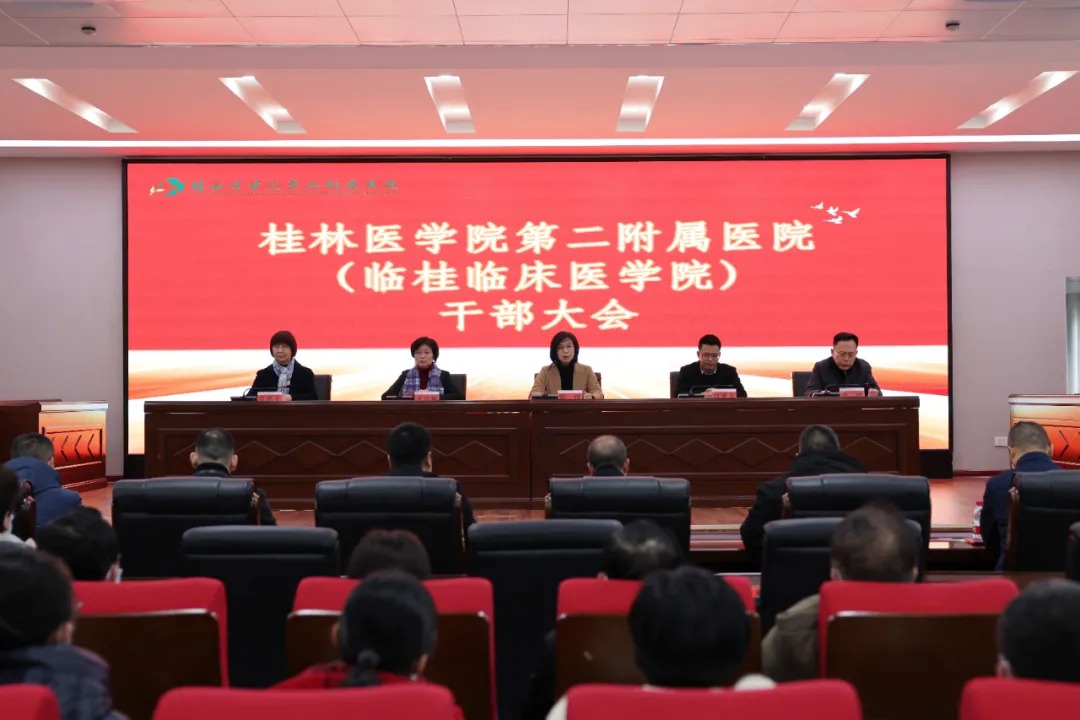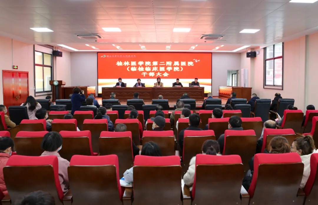 笃行致远谋跨越,砥砺奋进新征程。1月10日下午,桂林医学院第二附属医院(临桂临床医学院)在9号楼3楼会议室召开干部大会。桂林医学院党委常委、副院长陈旭,桂林医学院党委组织部副部长覃耀飞莅临会场。