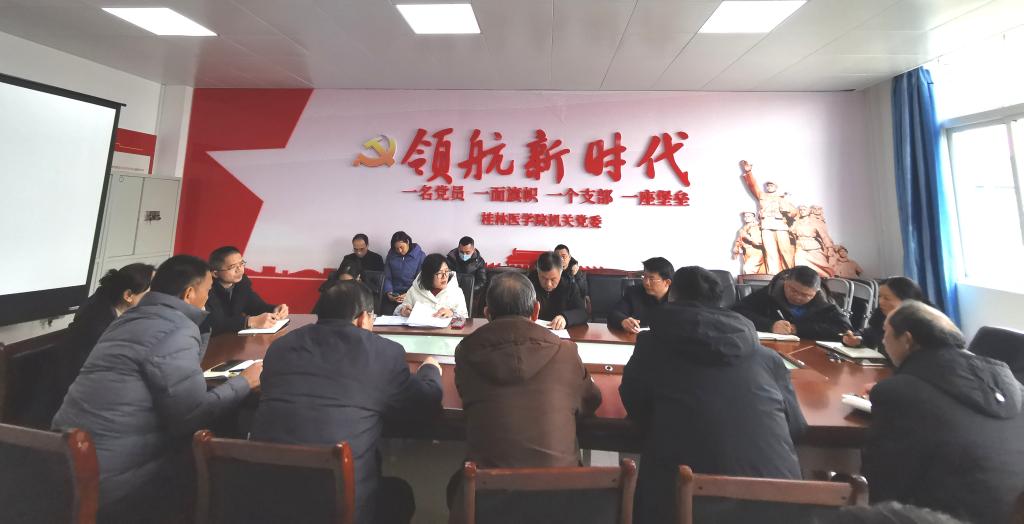 2月21日下午,机关党委在临桂校区明德楼401会议室召开新学期党建工作部署会议,校党委常委、统战部长、工会常务副主席李海林,机关党委委员、机关各部门负责人参加会议。会议由机关党委书记韦日明主持。