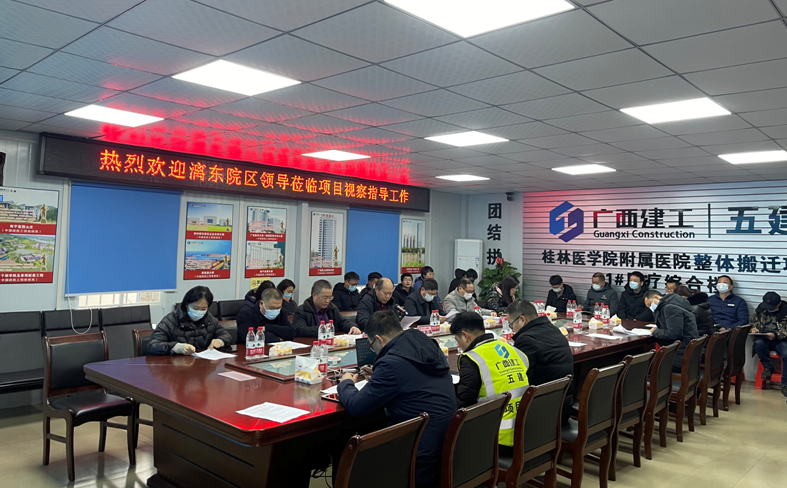 为了高质量推进桂林医学院附属医院漓东新院区的建设,确保新院区按期投入使用,2月26日上午,附属医院在漓东新院区项目部召开了新院区领导小组扩大工作会议。会议由副院长王群主持召开,医院党委书记覃克强、副院长袁晟光、总会计师陈东以及领导小组成员、各专项工作组成员参加了会议。