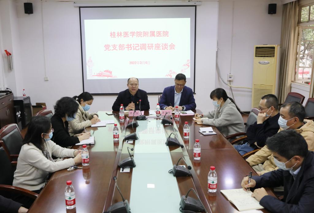 为深入了解医院基层党支部建设工作情况,倾听党支部书记们的心声,为医院党委推进下一步党建工作做好动员。3月4日上午,附属医院在行政会议室召开党支部书记调研座谈会,党委书记覃克强、党委副书记蒋尧传和30余名党支部书记代表参加座谈会,党委办公室、组织科负责人列席会议。会议由覃克强同志主持。