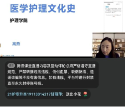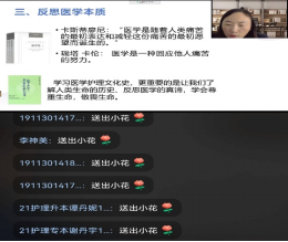 本课程主讲教师由护理学院院长高燕担任。课程第一讲绪论,首先讲述了开设本门课程的初衷,介绍课程概况、考核方式并推荐丰富的线上学习资源,旨在激发学生学习兴趣。其后从培养历史思维、理解医学文化、反思医学本质、认识医学规律和启迪现实问题五个方面分别阐述学习这门课程的意义所在。课堂教学引经据典,应用了大量人物故事和案例引导学生感受医学护理文化的魅力和价值、认识医学规律、反思医学真谛,在医术、仁爱和艺术徜徉中提升思想境界,培养关爱精神。
