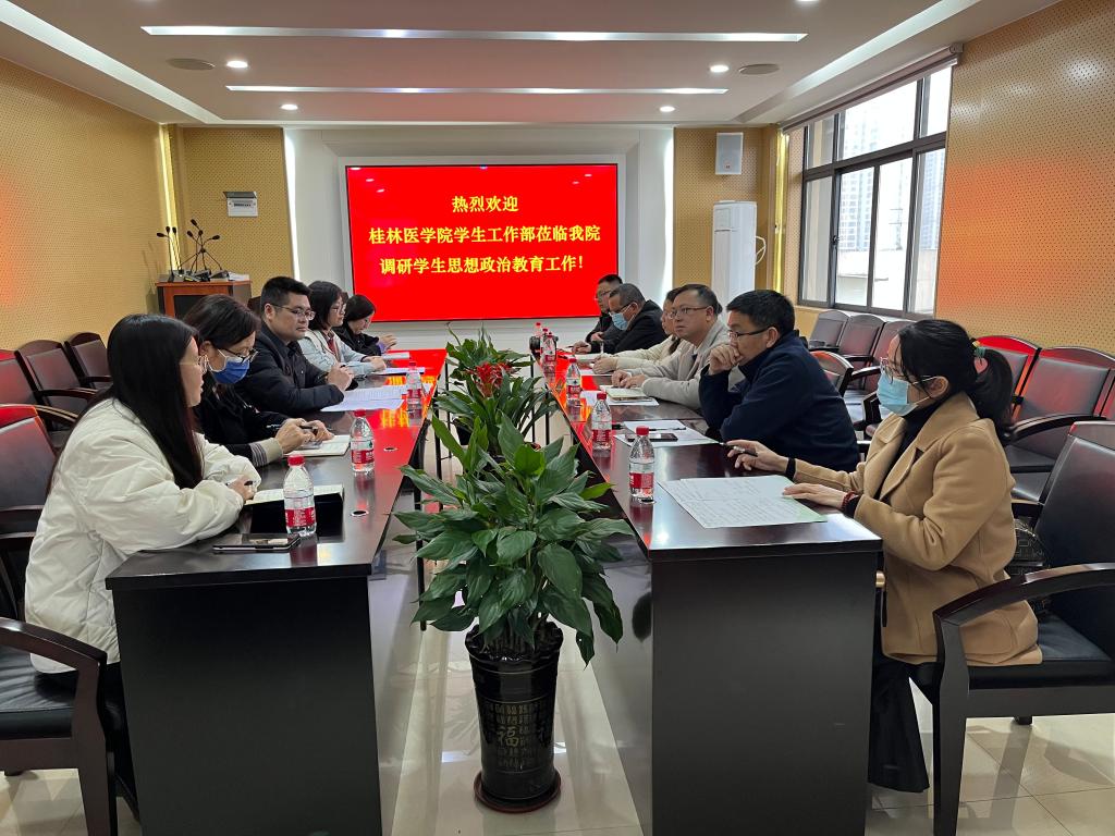 为进一步加强和改进临桂临床医学院学生思想政治教育工作,推进学院“三全育人”工作,3月24日下午,学校学生工作部、研究生工作部部长龙亮一行6人到临桂临床医学院调研学生思想政治教育工作,第二附属医院(临桂临床医学院)党委副书记黄宇平、学工办全体辅导员及教学管理部人员参加调研座谈会。