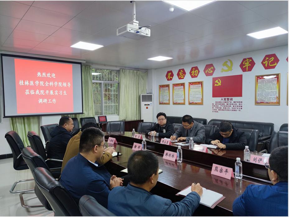 为充分了解本院2017级学生在二级医院实习、生活情况以及各二级医院实践基地教学活动开展情况,3月24日—25日全科医学院党委副书记潘涛,副院长梁志清、谭永星带领学工、教学相关人员前往灌阳县人民医院、灵川县人民医院和银海医院进行实地走访调研。