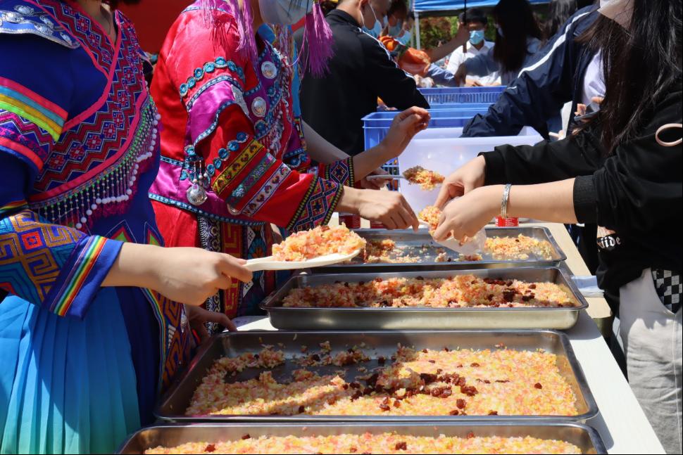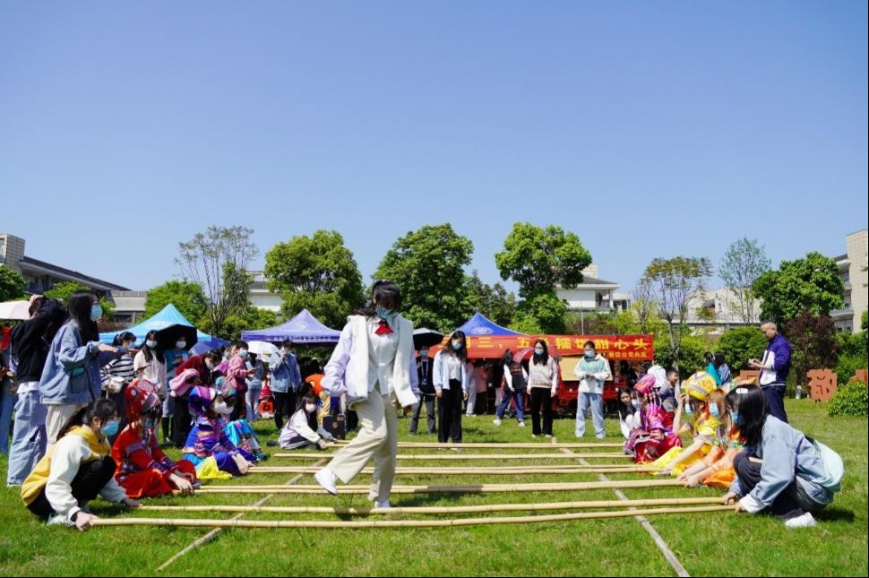 农历三月三的校园,桃李芳华、花团锦簇。临桂校区中心岛旁的大草坪上,丰富多彩的民俗活动吸引了大批师生前来参与,壮乡民族服饰展示、韵律竹竿舞、五彩糯米饭、抛绣球、绣球DIY等民族传统文化体验活动,让同学们沉浸式感受壮乡“三月三”浓厚的民族风情。现场欢声笑语不断,节日气氛热烈。