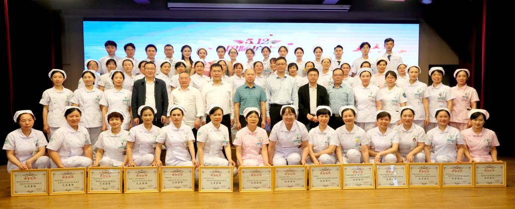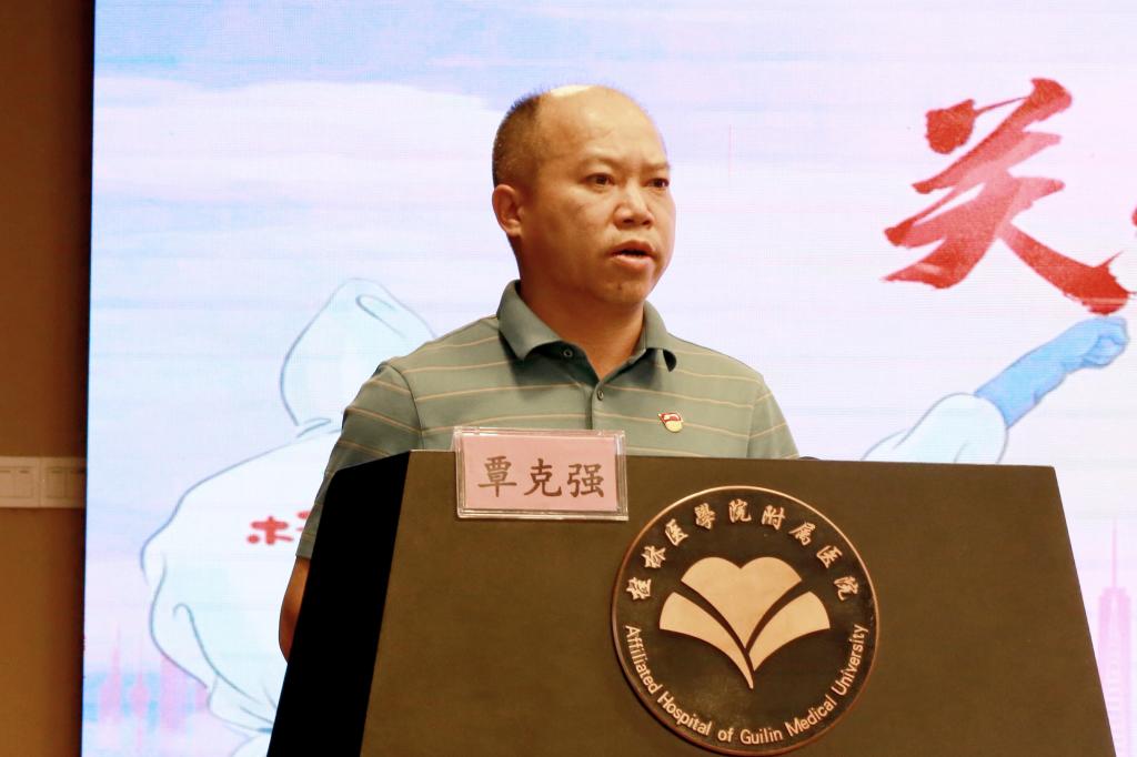 附属医院党委书记覃克强,党委副书记蒋尧传,党委副书记、纪委书记滕若冰,副院长袁晟光、王群,总会计师陈东,桂林医学院公共卫生学院院长、附属医院副院长谭盛葵出席大会。部分职能科室负责人、临床医技科室护士长、受表彰的护士代表参加了现场会议,援沪、援防城港护士在线上参加会议。护理部副主任廖春燕主持会议。