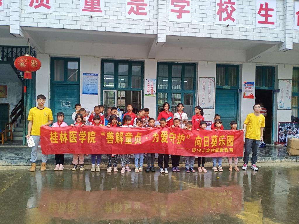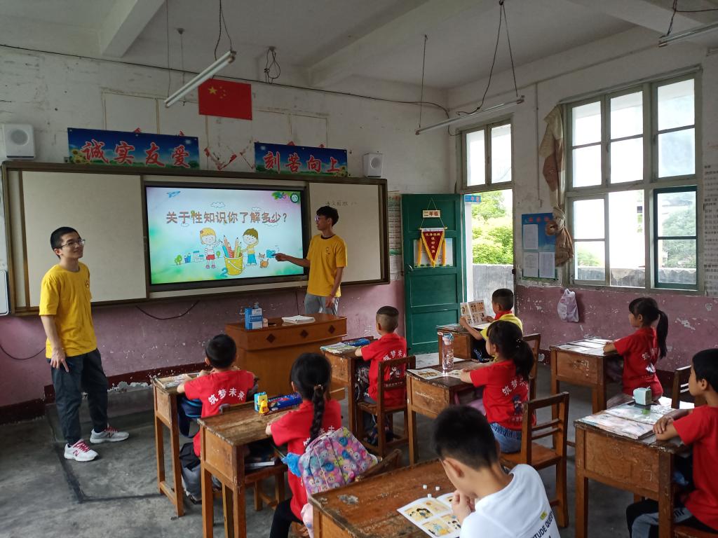 为普及农村留守儿童性生理和性健康知识,基础医学院“向日葵乐园”项目组于5月31日来到桂林市龙胜县乐江镇西腰村小学,开展“善解童贞·为爱守护”助力乡村振兴主题活动。活动受到西腰村小学师生的热烈欢迎。“向日葵乐园”小组成员在项目负责人丁章华同学带领下向高年级学生传授了青春期生理与性健康知识,调查同学们对青春期生理与性知识的了解程度,并分发宣传资料,使同学们对即将到来的青春期有更全面的认识,学会保护自己,更好地理解与面对青春期时自身出现的生理与心理变化,顺利度过青春期。