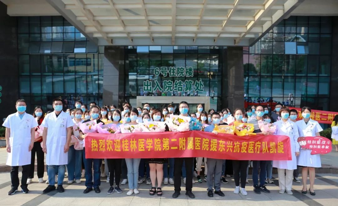 6月8日下午,第二附属医院援东兴救治医疗队58名队员圆满完成救治任务,并在当地结束隔离后,载誉归来。