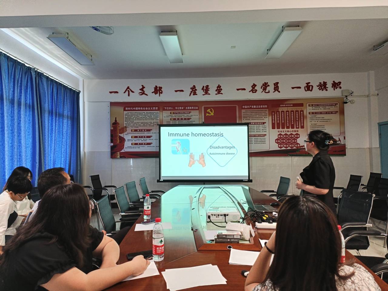 为进一步提高我院全英授课质量,选拔优秀教师参加第七届桂林医学院医学专业课程全英教学授课比赛,6月7日下午,基础医学院在基础楼1-252党员之家举办第七届桂林医学院医学专业课程全英授课比赛选拔赛,本次比赛由基础医学院教学副院长祝宁侠主持,学院资深一线教师担任评委,部分青年教师观摩了比赛。
