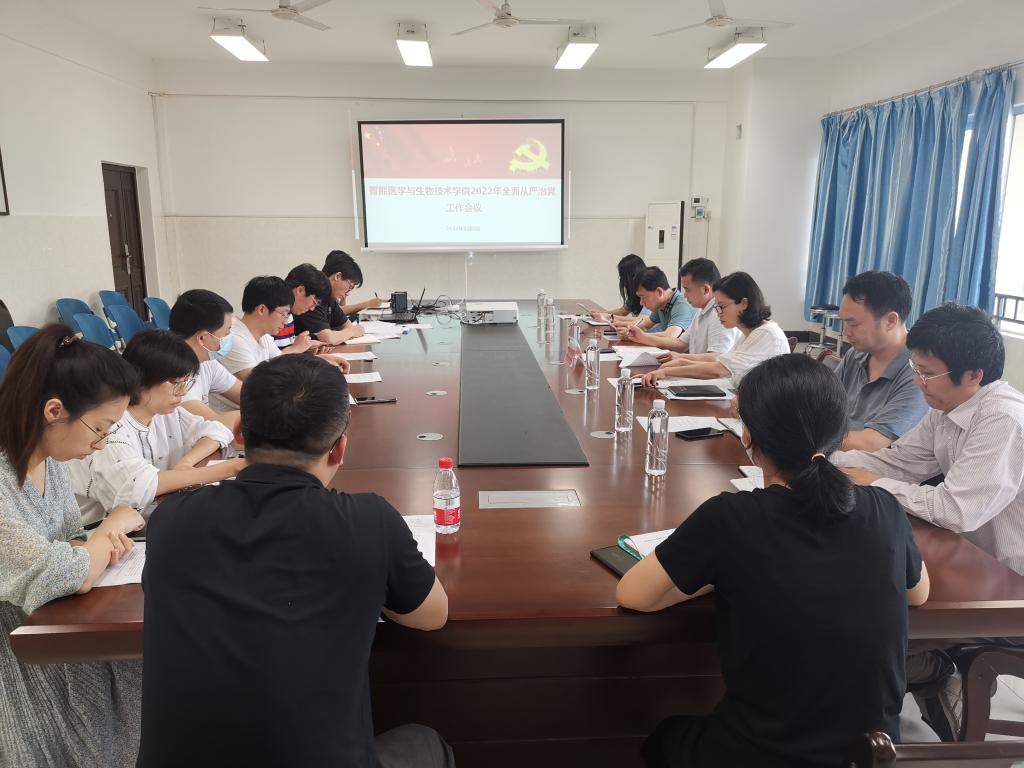 会上,智能医学与生物技术学院党委书记麦婕作题为《坚持全面从严治党不动摇 以实际行动迎接党的二十大胜利召开》的智能医学与生物技术学院2021年全面从严治党工作报告。她指出,2021年学院党委认真履行全面从严治党主体责任,始终坚持以自治区巡视整改、学校巡察整改促进学院改革发展,持之以恒抓好作风建设,坚定不移推动全面从严治党向纵深发展,为学院“十四五”开局起步提供了坚强保证;2022年,学院要继续坚持全面从严治党不动摇,从持续加强党的政治建设、严明政治纪律和政治规矩、做好校内巡察及整改工作、筑牢立德树人根基、加强党支部建设、持续推进作风建设、打造清廉校园文化等七个方面开展工作。