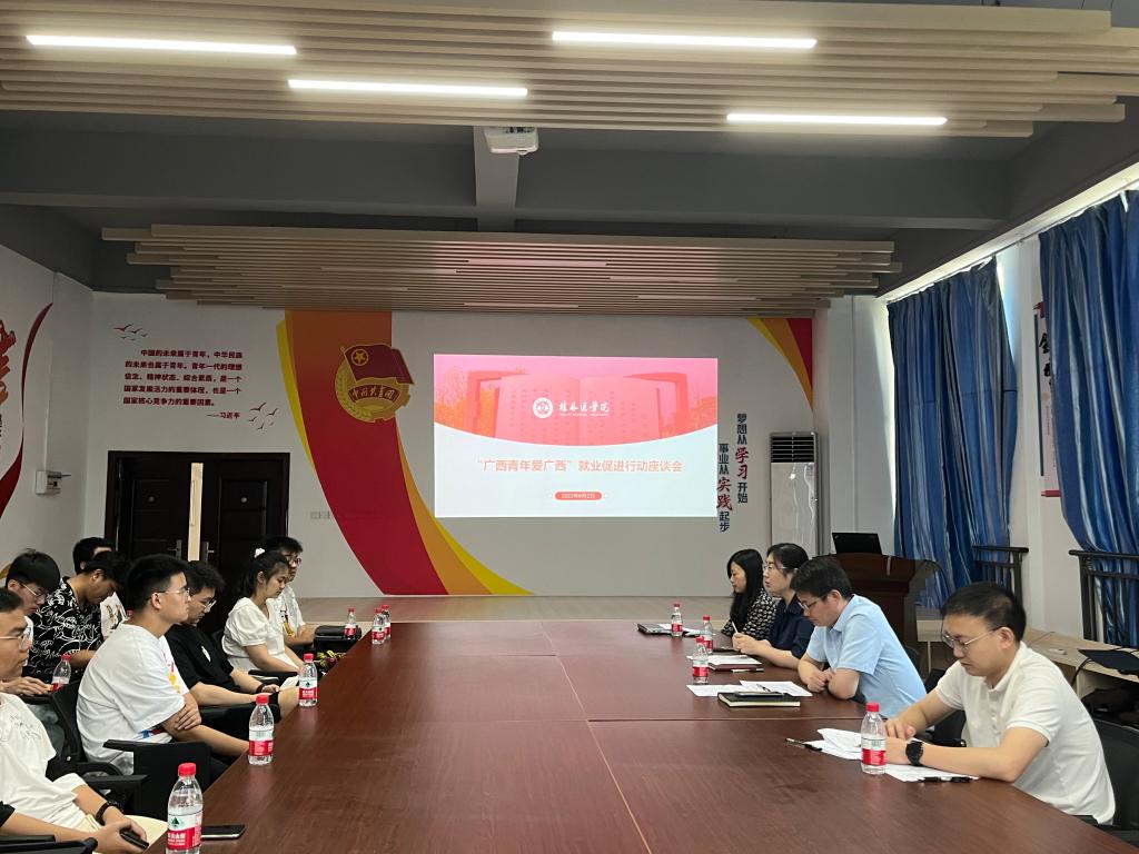 招生与就业服务指导中心老师结合当前大学毕业生就业形势,从国家、自治区有关就业政策,学校近年留桂就业情况等方面进行了详细解读。随后,校团委实践部老师对共青团广西区委“广西青年爱广西”就业促进行动的“1+10”帮扶行动进行了详细介绍。参会学生代表一一就个人当前的学习状况、就业想法做了交流。