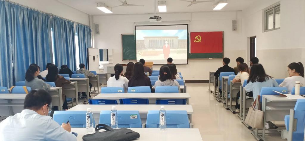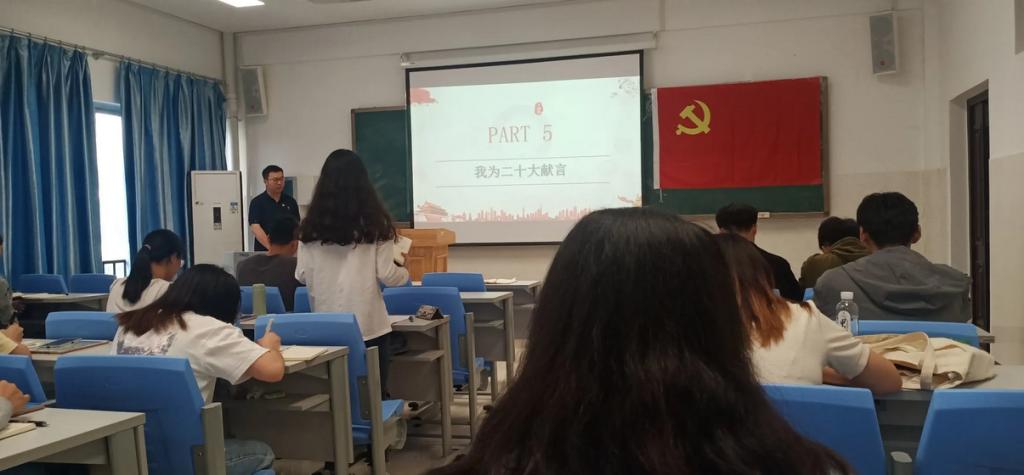 伴随着慷慨激昂的国歌,活动揭开序幕。首先,全体党员通过观看短片《党代会,是个什么会》,了解了党代会的性质和重要性。党员覃玲诗同志讲述了中国共产党历史上唯一一次在国外召开的全国代表大会的故事,同志们被中共六大代表为了理想信念历经千辛万苦突破重重困难参加会议的事迹深深感动。接下来,支部受资助党员代表黄海玲、旷喜洋同志深情朗诵了在参加我校“喜迎二十大”主题征文活动中撰写的文章,表达了对党和国家的感恩之情以及立志报效祖国的坚定信念。最后,全体党员共同参与了党的二十大相关工作网上意见征求活动,依次为二十大建言献策,现场气氛活跃,掌声不断。