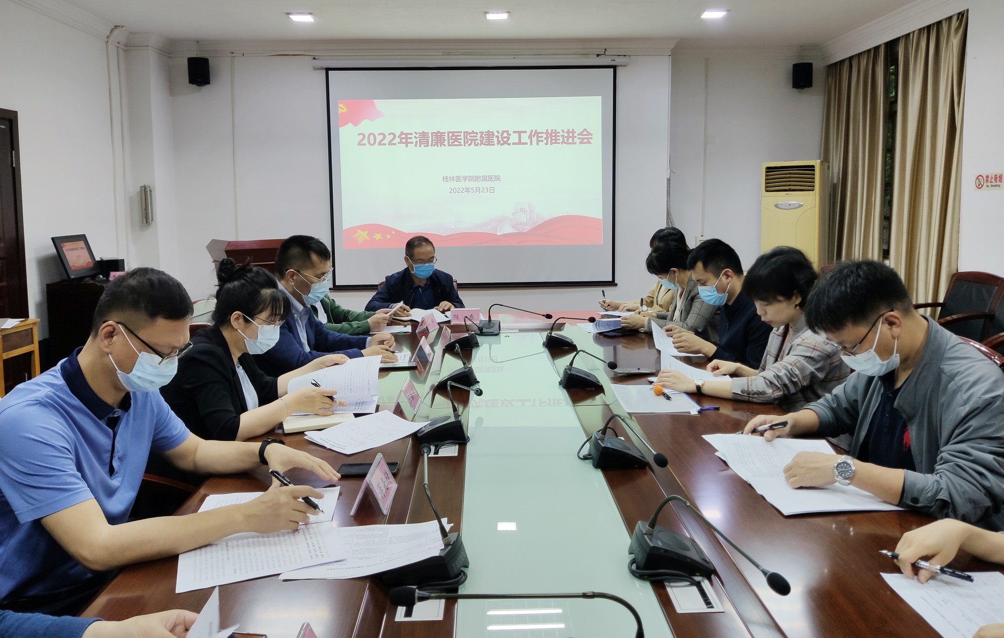 5月23日上午,附属医院召开2022年清廉医院建设工作推进会,清廉医院建设工作领导小组及办公室全体成员30余人参加会议。会议由医院党委副书记、纪委书记,清廉医院建设工作领导小组副组长滕若冰主持。