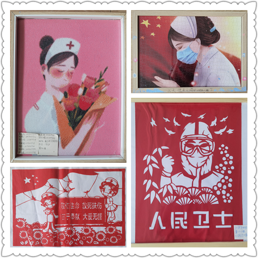学生从健康中国梦,伟大战“疫”精神,生命责任感,仁心仁爱仁术等方面切入,制作出书法、绘画、挂画、剪纸、海报、照片集和手工摆件等平面或三维创意作品。大部分作品构思新颖,立意积极向上,生动富有美感,具有较强的视觉冲击力和鲜明的护理文化特色,能够引发护理人情感共鸣,兼具观赏、实用和收藏价值。课程组教师从主题表达、作品规格、作品质量和独创性等方面进行考评,共评选出一等奖12名、二等奖24名,三等奖42名。