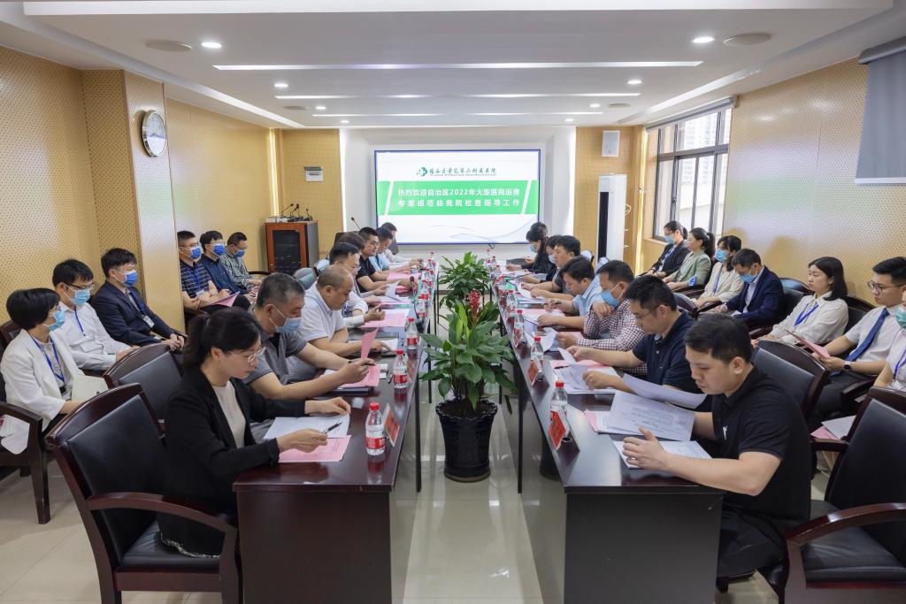 5月19日上午,自治区卫生健康委2022年大型医院巡查组到第二附属医院开展现场巡查工作。巡查组由自治区卫生健康委医政医管处副处长段润宁带队,包括党建、医务、财务、审计、医保等各学科专家共计8人。第二附属医院党委书记葛波,党委副书记、院长莫碧文等在家党政领导班子成员以及相关行政职能科室负责人陪同巡查。