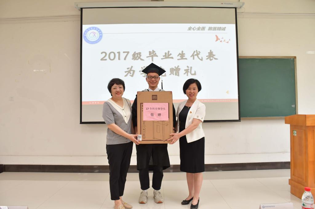 大会上,17全科班未返校学子还纷纷通过视频送上对学院的祝愿及感恩;此外学院为每一位毕业生准备了纪念品,表达了学院对学生的祝福;同时毕业生一起向学院、老师献礼,感谢母校、老师的教诲。