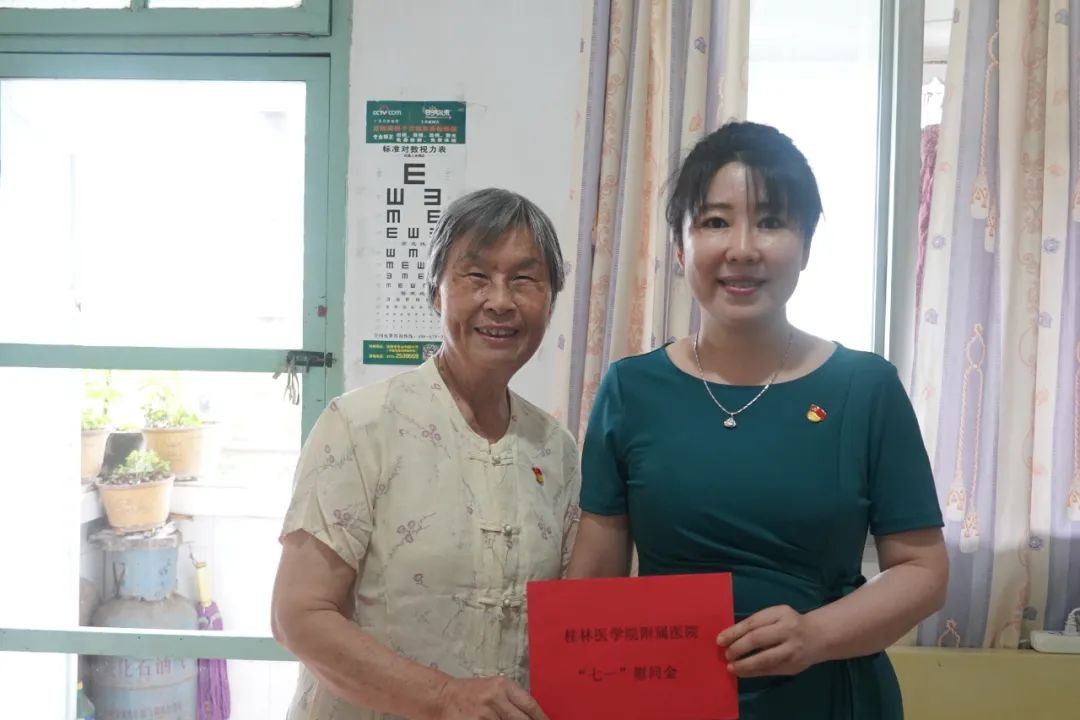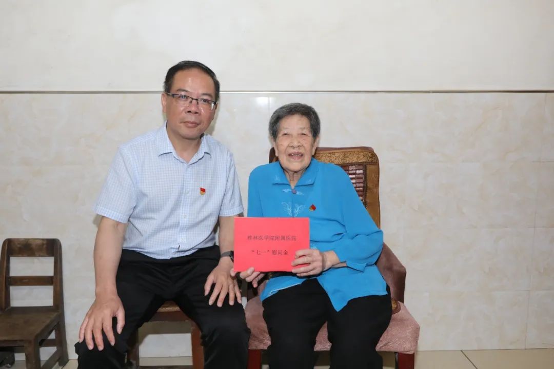声声问候显真情,句句祝福暖人心。为充分体现党组织对党员的关心和爱护,进一步增强党组织凝聚力、影响力,在“七一”建党节来临之际,附属医院领导覃克强、汪丽燕、蒋尧传、滕若冰、王群、马礼兵、王振冉、陈东走访慰问老党员、困难党员、乡村振兴驻村工作队员,向他们送去党的温暖和关怀,并向他们致以崇高敬意和亲切问候。