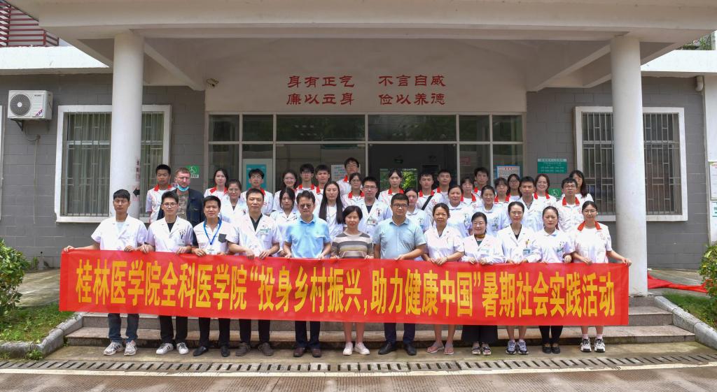 投身乡村振兴,助力健康中国,7月7日,由桂林医学院全科医学院主办,组织桂林医学院两所直属附属医院、广西糖尿病系统医学重点实验室、跨时空国际健康产业(北京)集团有限公司、五通镇党委、政府、五通镇卫生院等单位联合组成实践服务队在桂林市临桂区五通镇开展2022年暑期“三下乡”社会实践活动。桂林医学院全科医学院院长郑楚、党委副书记潘涛、副院长尹凯、桂林医学院两所直属附属医院专家带领全科医学院“全心全医”志愿服务团40多名志愿者开展专家义诊、健康宣传、医保政策宣传、急救技能培训、中医技能培训等系列活动。