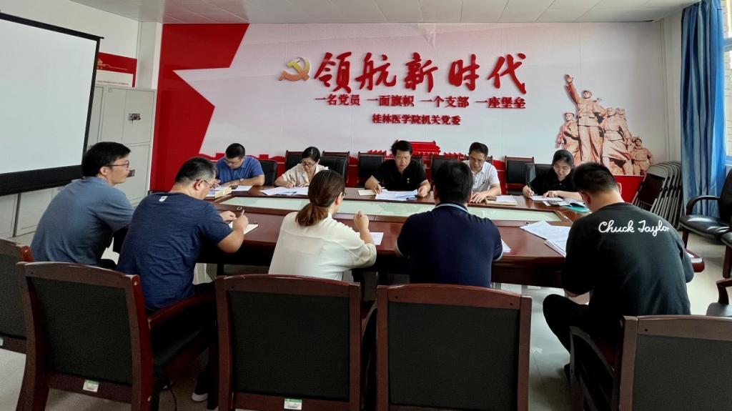 7月15日下午,机关党委在临桂校区明德楼401会议室召开理论学习中心组2022年第2次集中学习会。会议由机关党委书记韦日明主持。