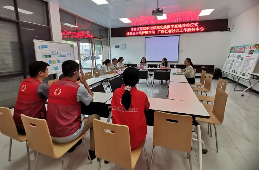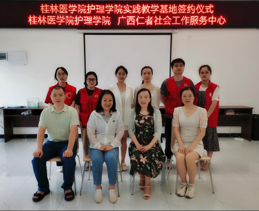 7月16日下午,护理学院与广西仁者社会工作服务中心共同举行社会实践基地签约仪式。护理学院院长高燕,外科护理教研室副主任和部分教师代表参加了签约仪式。