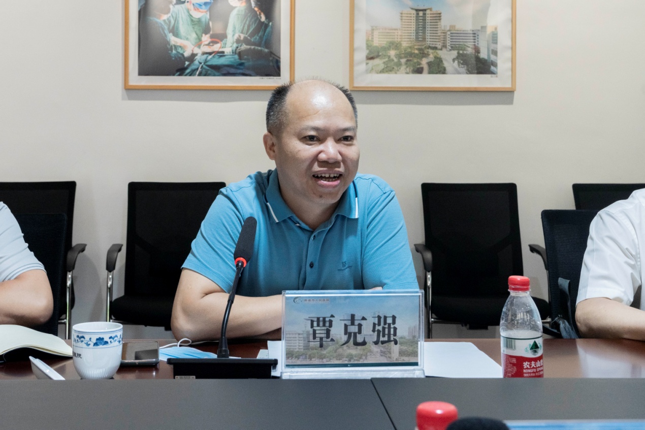 座谈会上,覃克强向走访单位表示感谢并介绍此行的主要目的,一是希望共同关注和想办法解决医学生毕业后的住培、就业和升学问题,二是就新形势下公立医院如何开展 “党建+”工作进行交流学习,三是就公立医院的发展和人事改革等相关问题方面进行探讨。此外,覃克强简要介绍了临床医学院(附属医院)在教学、医疗、科研、党建及人事改革等基本情况,重点介绍了我院在人才培养、专业建设和教学改革等方面取得的成果,并对当前医学本科毕业生的就业情况和存在问题进行分析。