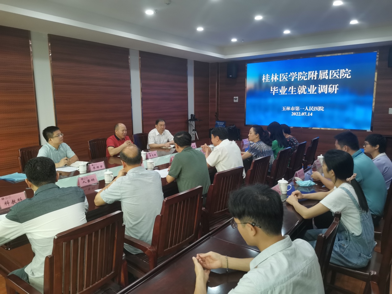为贯彻落实党中央、国务院、自治区教育厅和学校关于高校毕业生就业工作的决策部署,进一步了解用人单位人才需求、人才招聘等方面情况,拓宽临床医学院毕业生就业渠道,7月12日-14日,临床医学院(附属医院)党委书记覃克强、康复医学系主任庾俊雄,以及学工办工作人员等一行前往贵港市人民医院、桂平市人民医院、玉林市中西医结合骨科医院、玉林市第一人民医院开展“访企拓岗促就业”专项行动并召开专题座谈会。
