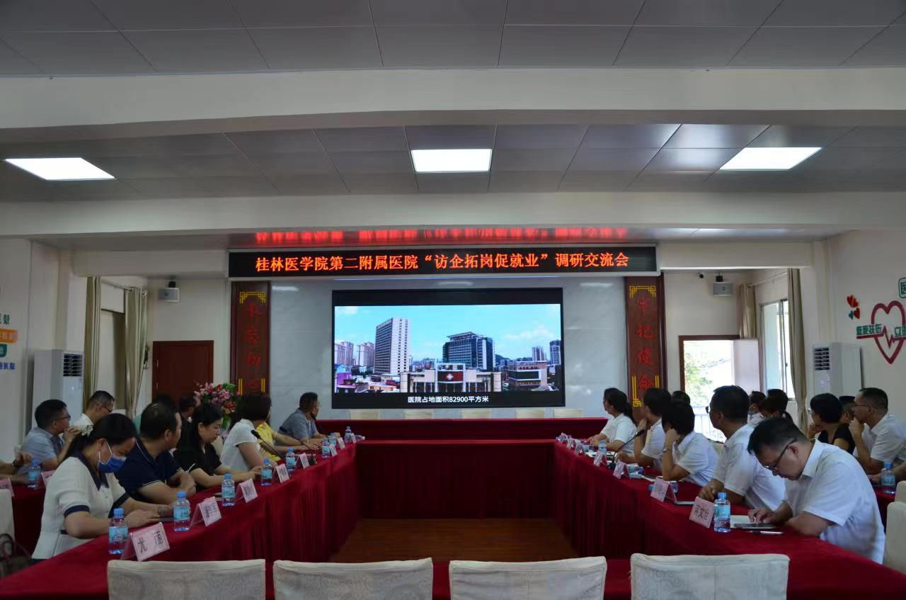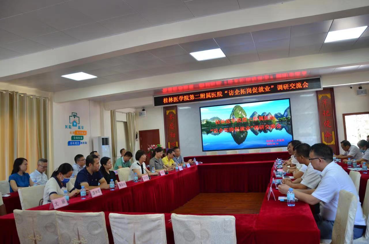 为贯彻落实访企拓岗促就业专项行动,进一步加深与用人单位的了解、合作,8月19日下午,第二附属医院(临桂临床医学院)赴阳朔县人民医院进行“访企拓岗促就业”专项行动调研会。第二附属医院(临桂临床医学院)党委副书记、院长莫碧文,副院长刘颖,阳朔县人民医院院长丁爱民及医院相关院领导、行政和临床科室人员参加此次调研会。