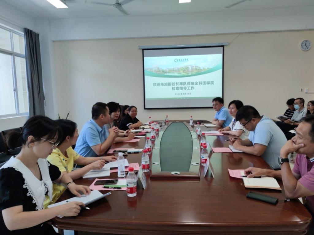 8月29日上午,校党委常委、副院长陈旭一行深入全科医学院进行新学期教学工作检查。此次检查采取听取汇报和讨论两种形式,全科医学院院长郑楚、副院长尹凯、党委副书记潘涛、专职组织员周长春及各部门老师参与此次检查,会议由尹凯主持。