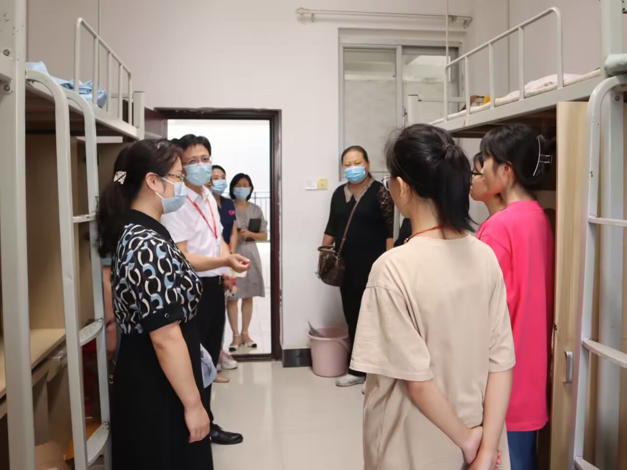 9月14日,我校迎来了2022级新同学。为深入掌握新生思想动态和到校情况,持续抓好疫情防控工作,当天下午,护理学院党委书记秦媛、院长高燕、党委副书记谢勇志带领学工辅导员、班主任,深入学生宿舍看望新生,送去学院的温暖和关爱。