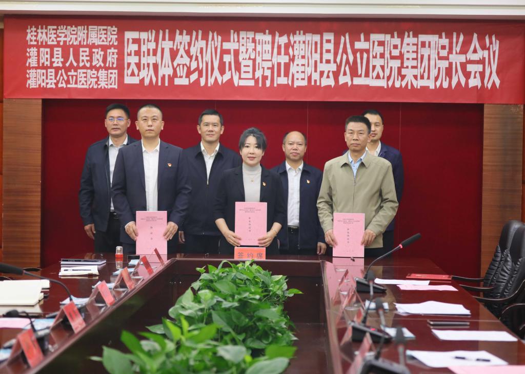 10月14日上午,桂林医学院附属医院(以下称桂医附院)与灌阳县人民政府、灌阳县公立医院集团在灌阳县委会议室举行紧密型医疗体签约仪式暨聘任灌阳县公立医院集团院长会议。