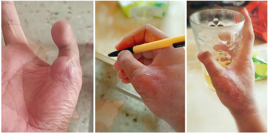 据医生介绍,手术难度较普通拇指再造高,术后患者再造右拇指成活良好,患者及家属均非常满意。患者目前已愈合拆线出院,右拇指克氏针已拔除,开始功能康复锻炼。