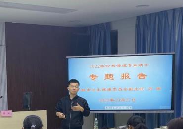10月27日晚,桂林医学院MPA教育中心邀请桂林市卫健委副主任刘斌在人文楼218教室进行了以“基层医疗角色与定位”为题的专题报告,中心领导、部分教师及2022级公共管理硕士研究生聆听了报告。讲座由人文与管理学院院长、MPA教育中心主任石武祥教授主持。