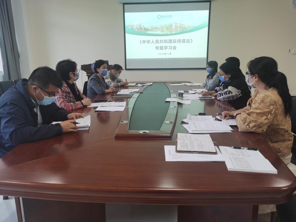 11月1日上午,全科医学院在211会议室召开《中华人民共和国反间谍法》专题学习会,此次的活动主题是:弘扬党的二十大主旋律,增强全体教职工国家安全意识和素养。会议由全科医学院党委书记马明霞主持。学院党政领导班子成员、专职组织员、全体教职工参加会议。