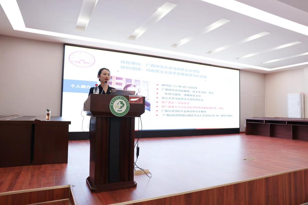 钟慧容副教授根据二十大精神从落实立德树人的根本任务、推进新时代师德师风建设的目标要求、培养学术规范和专业精神的内涵三个方面深入浅出地进行了讲授。她结合自己多年从教的历程和心得,通过列举生动的案例,运用精辟透彻的说理,号召广大教师正视和重视师德师风问题,不断加强师德修养,树立高尚的道德情操和精神追求。并将师德师风建设贯彻落实到实际工作中,体现到教书育人中,真正做到铸师魂、立师德、正师风、树师表。