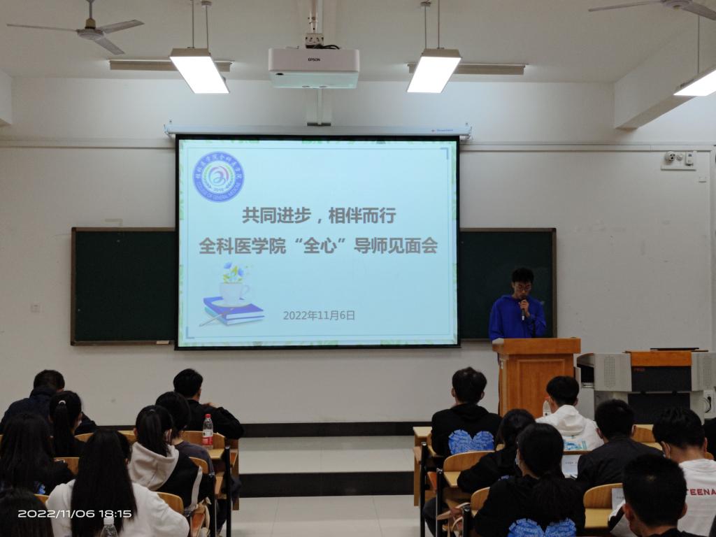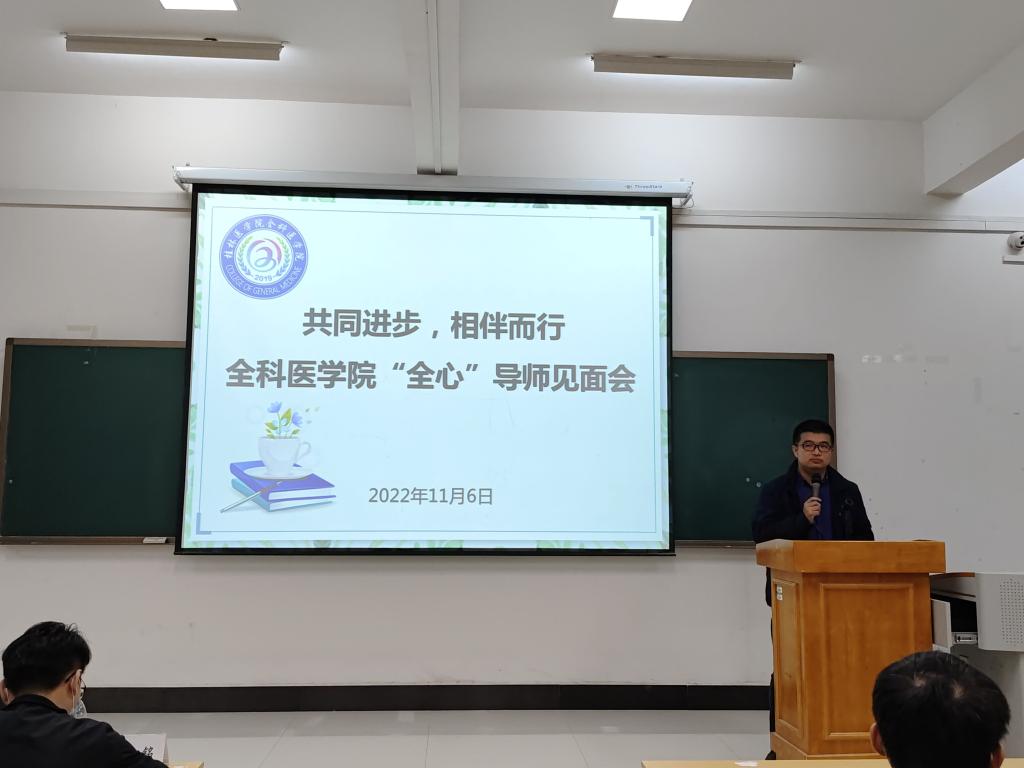 为持续推进学院三全育人工作,让新生尽快适应大学生活,11月6日,全科医学院在临桂校区教学北楼N203教室召开以“全心全意相伴 医路携手同行”为主题的“全心”导师见面会。学院党委副书记潘涛,学工办辅导员,70名高年级的“全心”导师,以及2022级全体新生参与见面会。