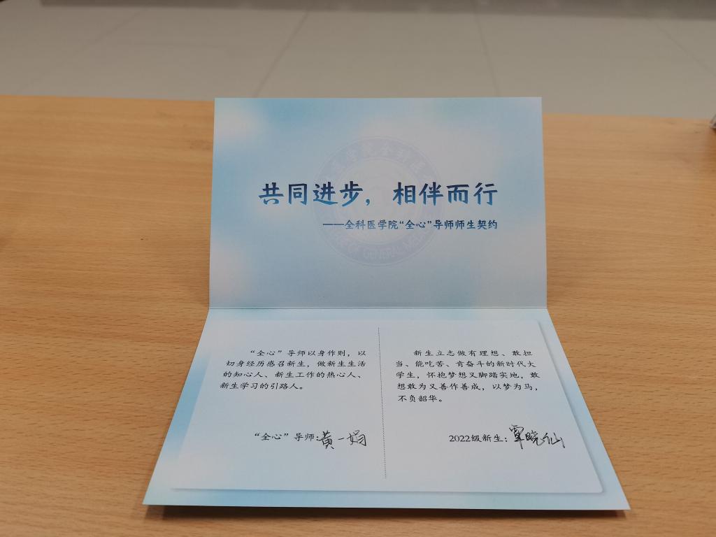 会上,“全心”导师和新生代表依次发言表态。导师代表热烈欢迎2022级新生加入全科大家庭,并代表全体导师郑重表态:作为“全心”导师将以身作则,努力做新生生活的知心人、新生工作的热心人、新生学习的引路人。新生代表感谢学院及导师的及时指导帮助,承诺要立志成为有理想、敢担当、能吃苦、肯奋斗的新时代青年,争取做“弘德善医”的好医生,为基层医疗卫生事业的发展贡献力量。随后,新生向“全心”导师敬献茶礼,双方宣读并签订了共同进步,相伴而行的师生契约。