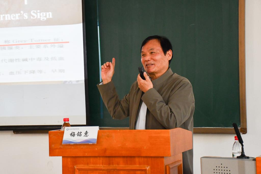 梅铭惠教授首先以“授人以鱼不如授人以渔”的寓言故事开启了本次关于临床思维培养的讲座。并从临床思维的定义、特点入手。他表示行医如履薄冰、如踩虎尾,应拥有缜密的思维和保持严谨的态度,并且应当将医学知识与医学实践相结合。接着,梅铭惠教授通过临床上一个个真实的病例分析告诫同学们,正确的临床思维应包含勤于实践、良好的三基、感性认识必须上升为理性认识、正确认识共性与个性几个要素。最后,梅铭惠教授表示,医学生培养良好的临床思维应以“三基”作为临床实践的指导,善于思考、持之以恒、寻找万物的规律。
