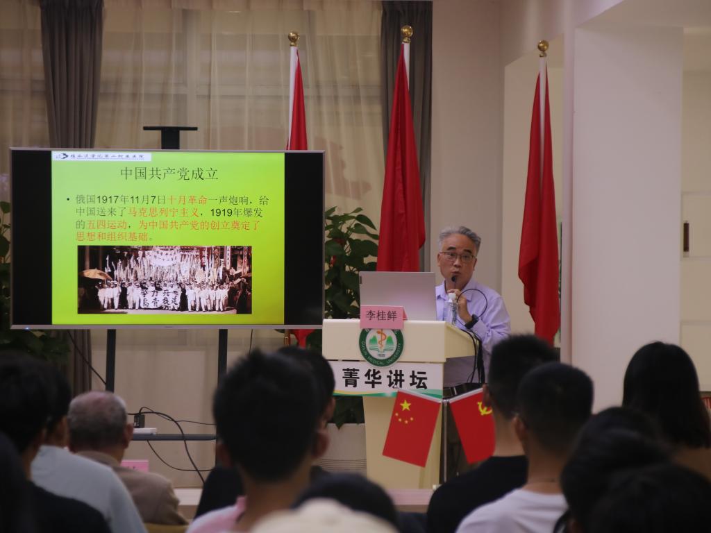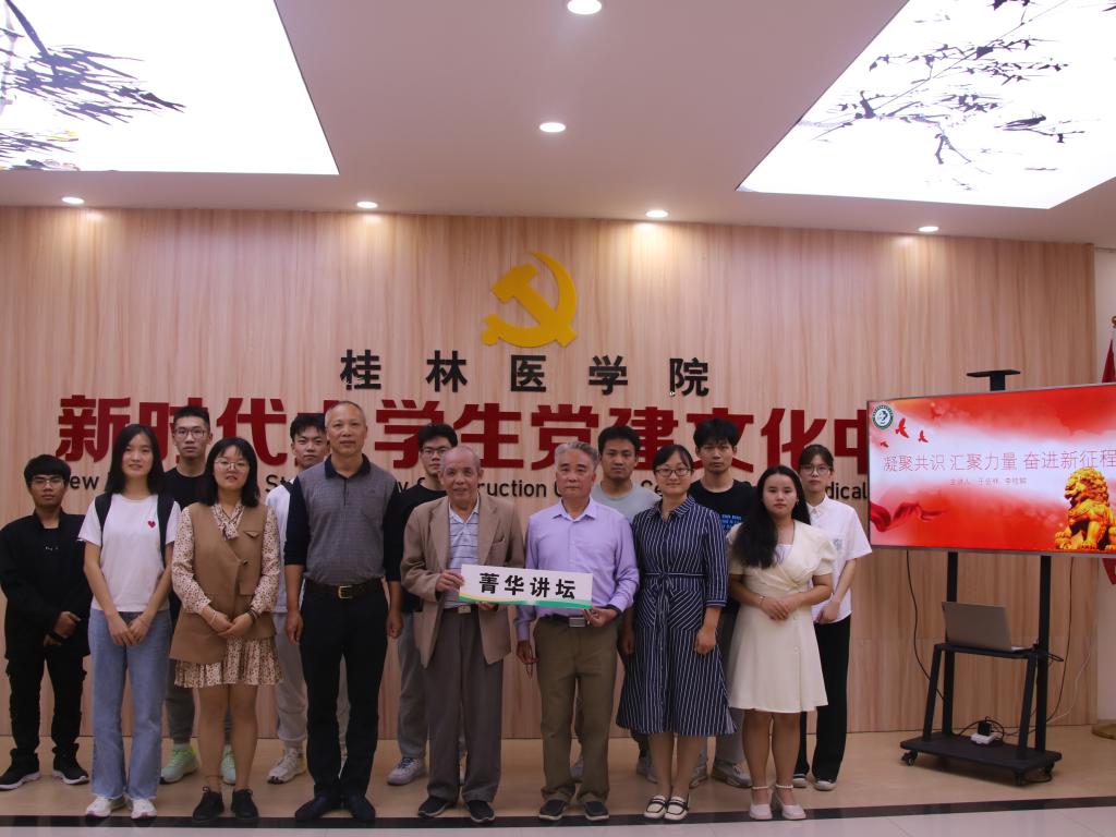 为贯彻落实“三全育人”工作体系,进一步加强临桂临床医学院大学生思想政治教育工作实效,切实让党的二十大精神落地生根,提升大学生思想品德教育,增强党性修养,11月8日下午,临桂临床医学院在临桂校区大学生党建文化中心举行“凝聚共识,汇聚力量,奋进新征程”菁华讲坛活动。第二附属医院退休党员于佐林、李桂鲜受邀参加,离退休管理办公室主任、学工办主任、辅导员及学生代表出席此次活动。