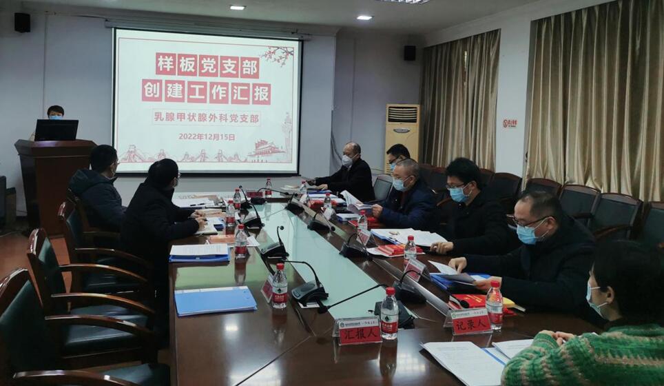 会议专题听取乳腺甲状腺外科党支部、药学部党支部、行政第一党支部做“双创”样板党支部培育创建工作汇报,听取放射科党支部书记做“双带头人”教师党支部书记工作室培育创建工作汇报。各党支部就培育创建工作中期的工作做法、工作成效、存在问题和下一步工作思路做了简要汇报。