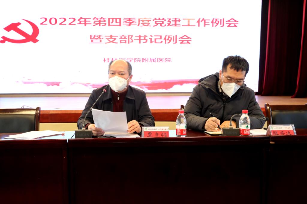 附属医院于1月3日在综合楼六楼多功能报告厅召开第四季度党建工作例会暨支部书记例会。医院党委书记覃克强,党委副书记、纪委书记滕若冰出席会议,党总支部书记、党支部书记、党务部门负责人参加会议。会议由覃克强主持。