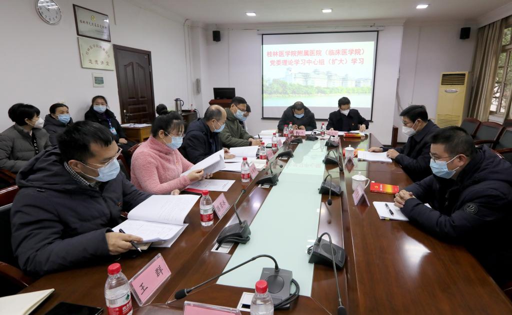 近日,附属医院党委召开理论学习中心组学习会。桂林医学院党委副书记王赣华,党委宣传部副部长、党委教师工作部副部长、校友办主任刘梦青到会指导,附属医院党政领导、党委委员参加会议,医院部分行政部门负责人列席会议。会议由附属医院党委书记覃克强主持。