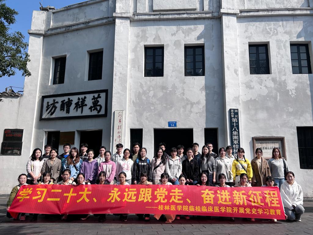 为贯彻落实党的二十大精神,进一步了解革命先辈的英勇事迹,追溯红色记忆,传承红色基因,锤炼党性修养,3月4日,临桂临床医学院组织党员前往八路军桂林办事处纪念馆开展“学习二十大,永远跟党走,奋进新征程”主题党史学习教育。临桂临床医学院学生党支部教师敬晓娟、庞玉琦以及学生党员代表参加活动。