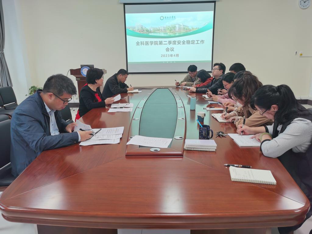 4月28日,全科医学院召开第二季度安全稳定工作会议。学院院长郑楚、党委副书记潘涛、专职组织员、全体教职工参加了会议。会上,郑楚传达了桂林医学院2023年第二季度安全稳定工作研判会会议精神。要求各部门注意疫情防控新政策,外出佩戴口罩,注意电信诈骗、防火防盗、防止食物中毒、交通安全。要求全院明确安全责任,把校园安全工作落实到个人,时刻紧绷安全生产这根弦。