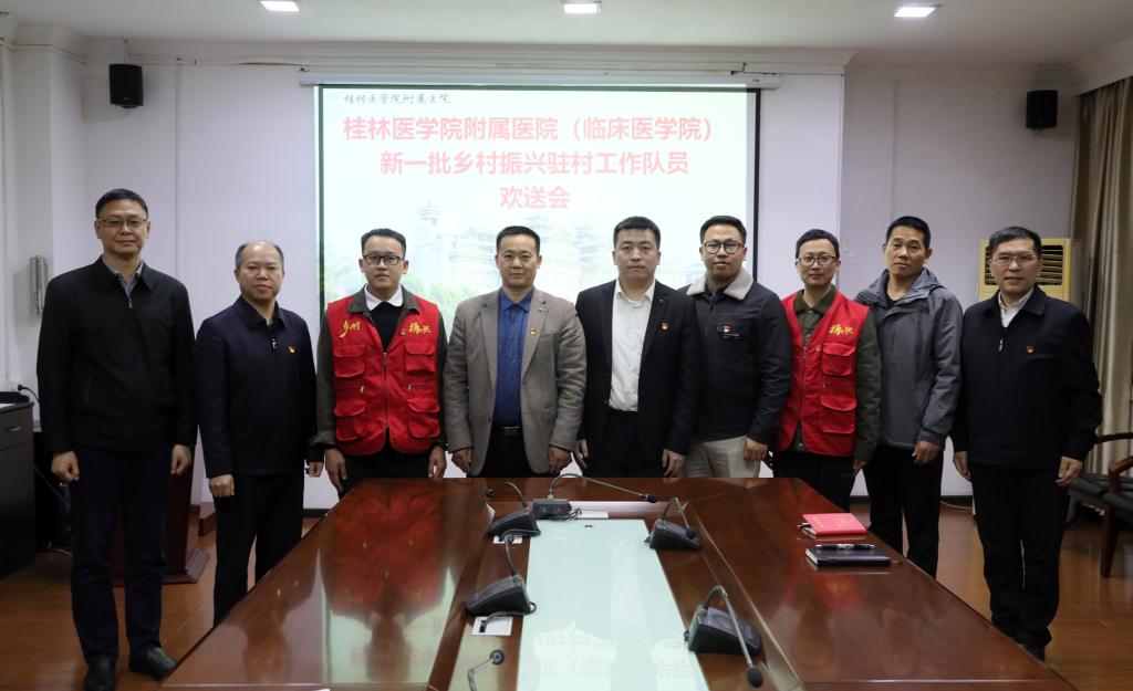 覃克强代表医院党委对老队员两年来的辛勤付出表示感谢,对老队员取得的成绩给予充分的肯定。在乡村,大到国家的方针政策要贯彻落实,小到每个家庭的小孩读书、看病就医等事情都要第一书记用心去做,大家在条件艰苦的地方能一心扑在工作上,努力为民办实事,把每一件小事做好,有2名队员在桂林市委组织部2022年度驻村工作队员和选派单位捆绑考评中被评为一等等次,确实不容易。新一批队员是医院精心挑选出来的,马上要去接老队员的接力棒,老队员要毫无保留地把经验传授给他们,新队员要继续发扬老队员的吃苦耐劳、乐于奉献的精神,带着赤诚之心奔赴乡村,用勤劳的汗水书写青春,开拓思路,依托医院的大力支持,接下来要着重于产业振兴、人居环境改善等方面,切切实实为老百姓做好事。