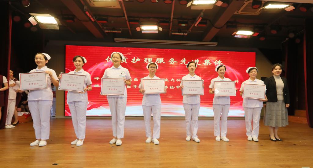医院党委副书记、纪委书记滕若冰宣读表彰名单。共有39个集体和180名护士在2022年度护理工作中表现突出获得表彰,其中“2022年度优秀护理服务先进集体”7个,“2022年度护理质量与安全管理优秀团队”7个,“2022年度护理质量改善项目先进集体”13个,“2022年度优秀专科小组”12个,“护理贡献奖(30 年护龄)”12人,“2022年度优秀护士”54 人,“2022年度金牌护士”10人,“2022年度光明天使”45 人,“2022-2023学年临床护理实践优秀教师”43人,“2022年度质量改善项目展示先进个人”6人,“2022年度优秀礼仪队员”10人。