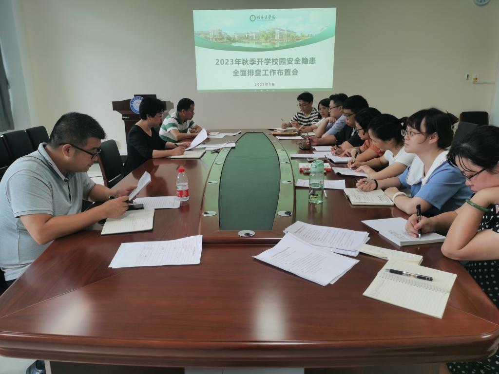 会上,学院党委副书记、纪委书记潘涛就新学期老生返校、新生入学工作进行了布置,要求学工办对学生进行全面的安全教育,突出财产安全、交通安全、消防安全、食品安全、心理健康、防电信网络诈骗等重点内容的安全教育提醒。学院院长郑楚传达学校有校园安全工作相关文件并强调,要求各科室从严从紧从实做好开学前校园安全稳定、新生入学、老生返校工作,加强校园安全隐患排查,确保学生安全到校;要充分做好开学前的各项准备工作,创造安全、整洁、美丽的校园工作学习环境。