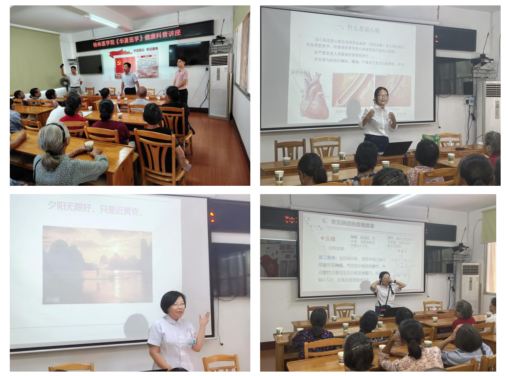 首先,桂林医学院《华夏医学》编辑部向交其村捐赠价值7000元的慰问品,给村民们带去节日的问候,并邀请专家为大家开展“冠心病的科普与预防”“老年预防跌倒”“常见病症的自我推拿”“高血压和糖尿病的健康自我管理”等为主题的健康科普讲座,并耐心解答村民朋友提出的疑问。