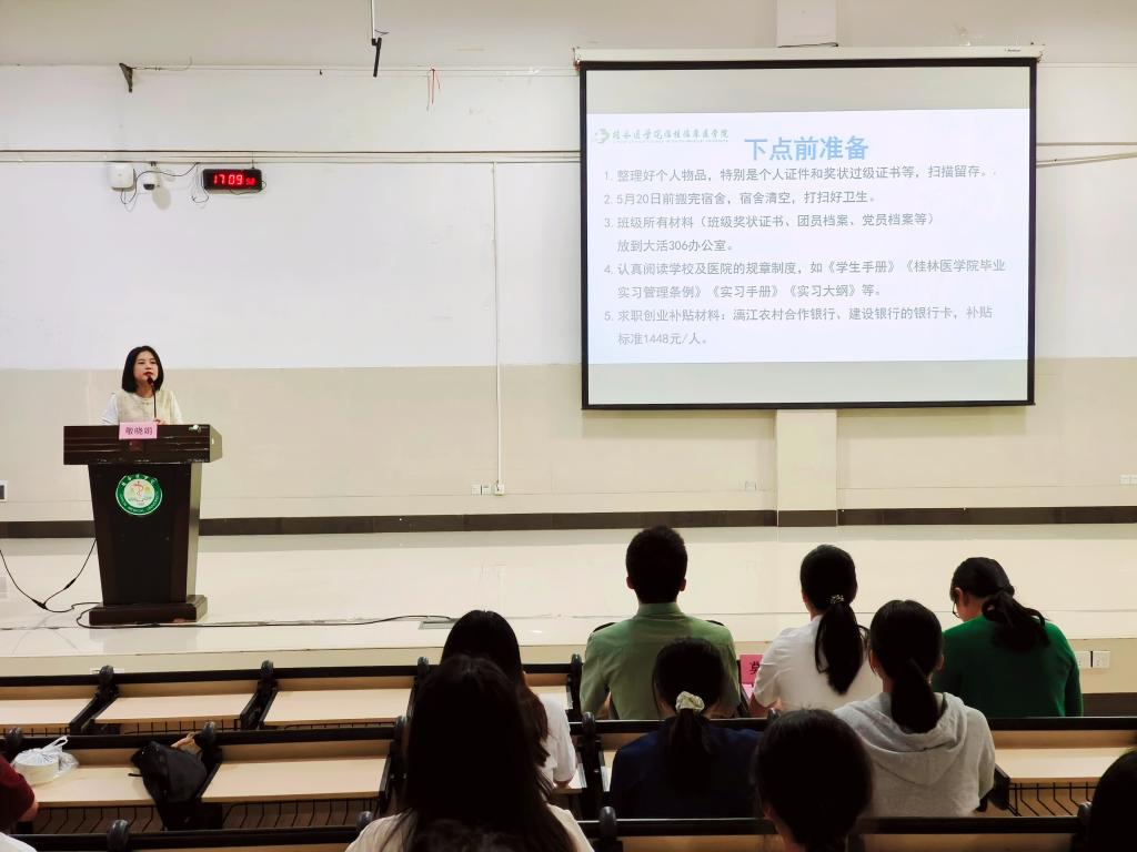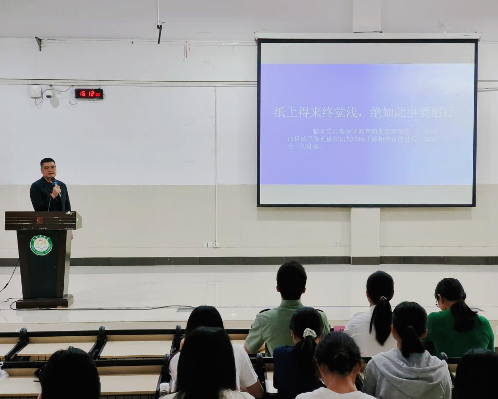 学院通过召开此次实习动员会,引导学生进一步明确实习的目的和意义,为学生实习期间的学习、工作打下坚实的基础。希望同学们能在即将到来的实习中展现出桂医学子的优良作风和精神风貌,在未来的职业道路上走得更远,实现自己的职业梦想。