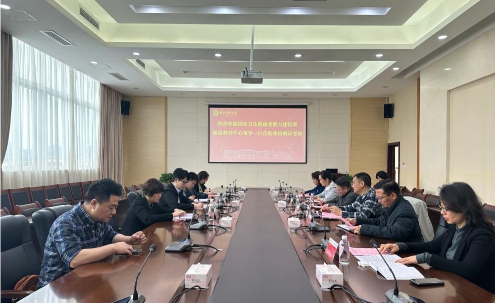 近日,国家卫生健康委能力建设和继续教育中心调研组马新明、许恩瑞等一行莅临我校调研考察。继续教育学院院长冯天瑾对调研组一行表示热烈欢迎,并简要介绍了学校基本情况以及继续教育依托学校教育、科研、医疗资源优势,持续深化产教融合与科教融汇,积极服务健康广西、健康中国战略的情况。